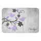 Adicione um toque divertido à sua casa de banho com um Bath Mat Personalizado Púrpura. Bath mat design apresenta um par de pombinhos adornados com uma vinha floral e uma área que você pode personalizar com seu nome. Ofertas adicionais disponíveis com este design, bem como uma variedade de cores.