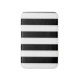 Este tapete de banho apresenta um padrão clássico de banda larga em preto e branco para um aspecto elegante.