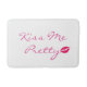 Este tapete de banho rosa e super fofo é acentuado com o ditado bonito, Beije-me Bonito, e um beijo brilhante, fazer perfeito para o banheiro feminino. Isto coordena-se perfeitamente com a cortina de chá Bonito do Beijo, porta-escovas de dentes e caixa de sabão.