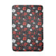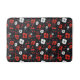 Lindas rosas florais vermelhas e brancas em tapete de banho de fundo preto.