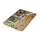 Foto com a cabeça ampliada por uma mão segurada em vidro magnificado é um bebê dragão australiano barbudo