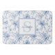 Add a soft, feminine touch to your space with this blue floral French toile bath mat. Featuring a delicate floral floral pattern with coquette bows and personalized with monogram and name. This design brings warmth and charm to the bathroom.