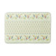 Um tapete de banho com um pássaro azul feminino e masculino sentado num galho de árvore florescente. A imagem, o texto e o fundo podem ser personalizados. Arte original por W.B.