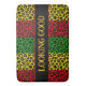Bandeira rasta colorida vermelha, amarela e verde do banheiro de impressão leopardo. No meio está a citação 'PARECIDO BEM', que é personalizável para que você possa adicionar seu próprio texto, ou excluir se preferir