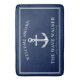 Um tapete de banho personalizado adaptado ao orgulhoso proprietário do barco. Apresenta uma âncora náutica vintage, seguida do nome do barco e do nome do capitão do navio e do local da doca.