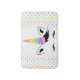 O Bonito Pastel Unicorn Bath Mat desenhado pela Enchantfancy Design Company apresenta um doce rosto unicórnio cheio de pestanas grandes e um chifre unicórnio pastel arco-íris. Um padrão de estrelas do arco-íris pastel sobe o fundo. Personalize com sua escolha de nome!