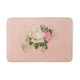 Um tapete de banho com um buquê de rosa floral com flores brancas e cor-de-rosa. O fundo é rosa com um padrão floral. Bonito e elegante design.