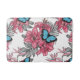 Buquê desenhado à mão de flores tropicais, palmeiras e borboletas