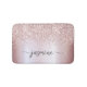 Tapete de Banheiro Personalizado Glam Rosa Brilho Dourado Metalizado Monograma Nome Assinatura Script. Este design apresenta seu primeiro nome em um estilo de letra manuscrita bonita com fonte de cauda swash, assinatura de caligrafia (ou tipografia) em folha metálica falsa rosa dourada com brilho e borda glitter glam. São fáceis de personalizar. Ótimo presente feminino e elegante para aquecimento de casa, também para aniversário, casamento, festa de 16 anos, chá de noiva, despedida de solteira e é para a garota que ama coisas únicas e estilosas com brilho.