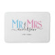 Celebre sua santa matrimônio com este adorável tapete de banheiro para casa de casamento Sr. e Sra. para casais recém-casados. Personalize-o adicionando seu último nome / sobrenome e data do ano de aniversário de casamento. Fonte elegante rosa, azul e preto em fundo branco. Ótimo para um chá de panela ou presente de aniversário / casamento para um marido e esposa.