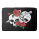 Crânios clássicos com rosas vermelhas e punhais parecem excelentes no tapete do banho e combinam com outros itens do banho para fazer um conjunto.