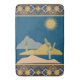 Cena do Deserto Cactus. Linda cena calmante da cena do deserto com cacto com padrão geométrico no topo e no fundo do tapete de banho em Azul, Dourado, Linen. Apoiado em vários tons para se adequar à decoração da sua casa ou como presente para alguém especial. Toalhas para combinar.