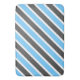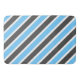 Este tapete de banho apresenta um belo padrão diagonal listrado em azul-céu, cinzas escuras e branco.