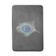 Desenho vetorial de uma pena de pavão, melhorada e reproduzida num efeito de giz de conte mole - cinza de prata clara/cinza, com cinzas, turquesa e olho rosa de fúchsia, sobre fundo de cinza de grafite profundo Bathmat