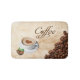 Featuring a soft coffee-colored background, scattered coffee beans, and a steaming cup of coffee, this bath mat adds warmth and style to any bathroom décor.
