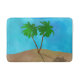 Tapete de banho com padrão de cena de praia tropical com palmeiras, areia e céu feito a partir de uma colagem digital de imagens em aquarela e padrões
