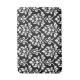 Leafy damask em um design de padrão de superfície do estilo vintage em detalhes brancos sobre um fundo preto.