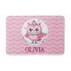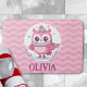 Coruja rosa fofinha personalizada vestindo capuz e cachecol em um tapete ondulante de banho de fundo