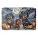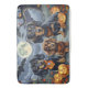 Libere o espírito assustador com esta design sombria do Dia das Bruxas apresentando um bando de cachorros sob um céu escuro e iluminado, cercado por morcegos voadores e abóboras brilhantes. Perfeito para aqueles que amam um toque de diversão terrível com seus amigos peludos!