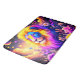 Este tapete de banho tem um design de leão nele.