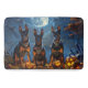 Libere o espírito assustador com esta design sombria do Dia das Bruxas apresentando um bando de cachorros sob um céu escuro e iluminado, cercado por morcegos voadores e abóboras brilhantes. Perfeito para aqueles que amam um toque de diversão terrível com seus amigos peludos!