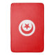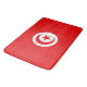 Drapeau de la Tunisie: Majoritairement rouge, il comporte en son milieu un disque blanc où figure un croissant rouge qui entoure une étoile à cinq branches.