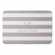 Adicione um toque de elegância personalizada ao seu banheiro com esta lavanda empoeirada e tapete de banho branco listrado. Este design apresenta faixas largas e horizontais numa combinação de cores clássica, oferecendo espaço para um monograma personalizado. Este produto absorvente e em pelúcia é visualmente atraente e proporciona uma superfície confortável e segura. Melhore sua casa com este sotaque de na moda e pré-disquete.