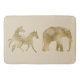 Esta esteira de banho mostra uma cena africana original: duas zebras à esquerda de um elefante.