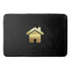 Um tapete de banho com uma simples imagem de uma casa de gradiente de ouro sobre fundo preto. Design minimalista elegante.