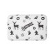 Um tapete de banho com uma repetição perfeita a preto/branco de elementos de Natal - meias, gingerbreadman, flocos de neve, renas, Enfeites de natal, velas, árvore de Natal e as palavras "Feliz Natal" - a ilustrar. Pode ser adequado para ocasiões solenes de Natal.