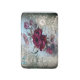 Linda, vintage, florais de rosa vermelha de jornal, apresentando um falso broche e colar de pérolas, gaiola de pássaros com arco teal para criar um estilo quic luxo, extravagante e vitoriano para um belo decoro de banho.