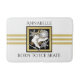 O design apresenta um par de skates de gelo sobre uma crista de floco de neve com falso brilho dourado, preto e fundo branco. Este elegante design desportivo de inverno serve como um legal tapete de banho moderno e único, com texto personalizado.