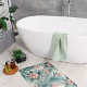 Elevem o banheiro com a energia vibrante do tapete da Essência Tropical. Com folhagem tropical ousada e cores brilhantes e ricas, este tapete de banho adiciona um toque inspirado na ilha ao seu espaço. Feito com material macio e absorvente, ele oferece conforto e durabilidade ao mesmo tempo em que traz uma vibração animada e refrescante para o seu banheiro. Perfeito para banheiros costeiros, tropicais ou do tipo bô, este tapete cria uma atmosfera alegre e revigorante, ao mesmo tempo que adiciona um talento único à sua decoração.