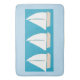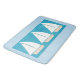 Esta esteira de banho é leve - azul com três designs do veleiro em um fundo de turquesa.