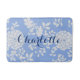 Bath Mat Personalizado: Flores Brancas Graciosas/Estilo Clássico Delft Motif/Pastel Azul Fundo/Tipografia De Script Moderno Para Personalização