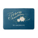 Esta esteira de banho caracteriza um gráfico digital inspirado vintage de uma poinsétia branca em um fundo azul escuro. O texto do roteiro, em uma cor do inclinação do ouro, lê: Feliz Natal. O texto customizável permite-o ao personalizado com seu nome.