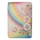 Um arco-íris termina num jardim de flores pastel.