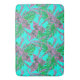 Este design apresenta folhas de palma e colos pintados, colorido e colados. Em cores verdes e cor-de-rosa num fundo de turquesa gelada.