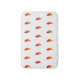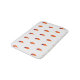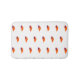 Esse tapete de banho apresenta como padrão um conjunto de folhas vermelhas distribuídas uniformemente na superfície branca.