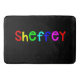 Sheffey Bold Rainbow Imaging 9711 Bath Mat, dando a este brilhante tapete de fontes de cor primária mostrado em um fundo negro e ousado para qualquer um com o sobrenome de Sheffey. Especialmente excelente em uma sala de dormitório ou em um centro de assistência. entre em contato comigo para usar um nome diferente em celeste@khoncepts.com #sheffey