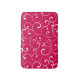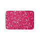 Um padrão branco de cachos brancos sobre um fundo vermelho de framboesa faz uma afirmação colorida e ousada no banheiro. Esta cor coordena-se lindamente com cores pretas, brancas, cinzas e cor-de-rosa. Obtenha aqui o suporte da escova de dentes e o dispensador de sabão correspondente: