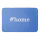 O tapete azul brilhante de banho a cores sólidas apresenta #home - ou a sua escolha de hashtag, palavra, nome ou inicial. Torne mais claro um apartamento, banheiro branco ou misturado e combina com outras cores brilhantes.