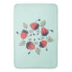 Um tapete de banho de morango bonito, com uma ilustração vetorial que representa 5 personagens felizes sorridentes de morango dançando num círculo rodeado por folhas e flores da sua própria espécie. Design divertida com espírito primavera para uma pessoa que ama essas frutas deliciosas.