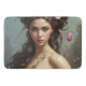 Imagem gerada pela IA de uma mulher adornada com uma coroa de flores vibrantes e coloridas, colocada contra um pano de fundo sereno e etéreo.