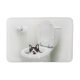 O gato preto e branco do gatinho do smoking decide banhar-se no toalete bonito, esteira de banho engraçada dos amantes do gato