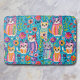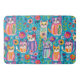 Ilustração Ai de cores aquáticas de felinos folclóricos e flores em cores azuis, laranja, vermelha, roxa e clara bonito. Adicione um brilho alegre ao seu banheiro com este tapete de banho fofo!
