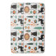 Meio século Padrão moderno com gatos pretos. Turquesa e abstrato de laranja deixam plantas.