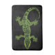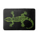 Esteira de banho com um geco verde bonito com os olhos amarelos brilhantes.