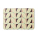 Geometric pattern with overlapping beige, peach, and brown triangles, accented by teal circles. The design forms a zigzag, creating a retro vibe.