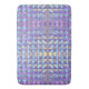 Um tapete geométrico de 2 design, dourado, azul e roxo, iridescente.